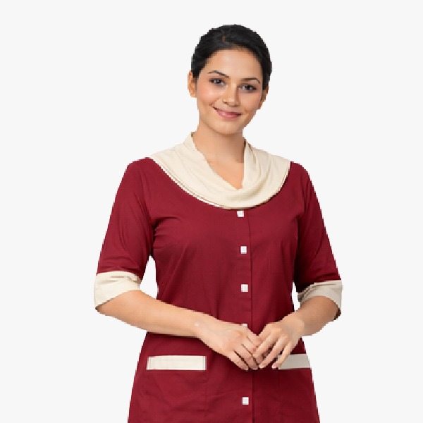Through precise embroidery or printing, your logo can be elegantly placed on each uniform, enhancing brand visibility while maintaining a polished appearance. Customizable color schemes and design elements ensure that every uniform aligns with your organization’s brand guidelines, creating a cohesive and recognizable look across your housekeeping staff.